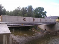 Neubau einer 1-feldrigen Brücke in STB-Fertigteilen (Längs- und Querträger miteinander verschraubt). Stützweite von 22,0m.